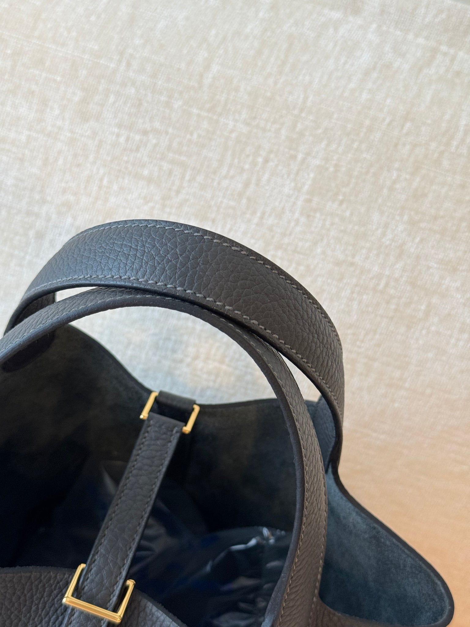 - Color can look different depending on the light ( daylight - black/grey; soft light - dark brown)