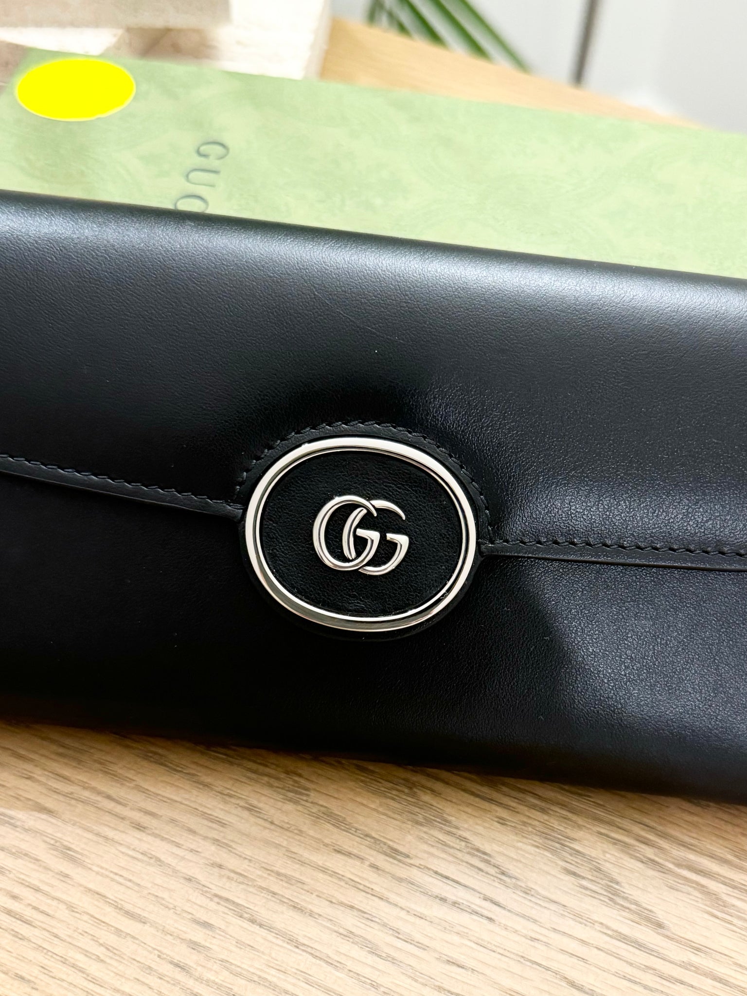 GUCCI Mini Joan Double Leather Bifold Long Wallet in Black