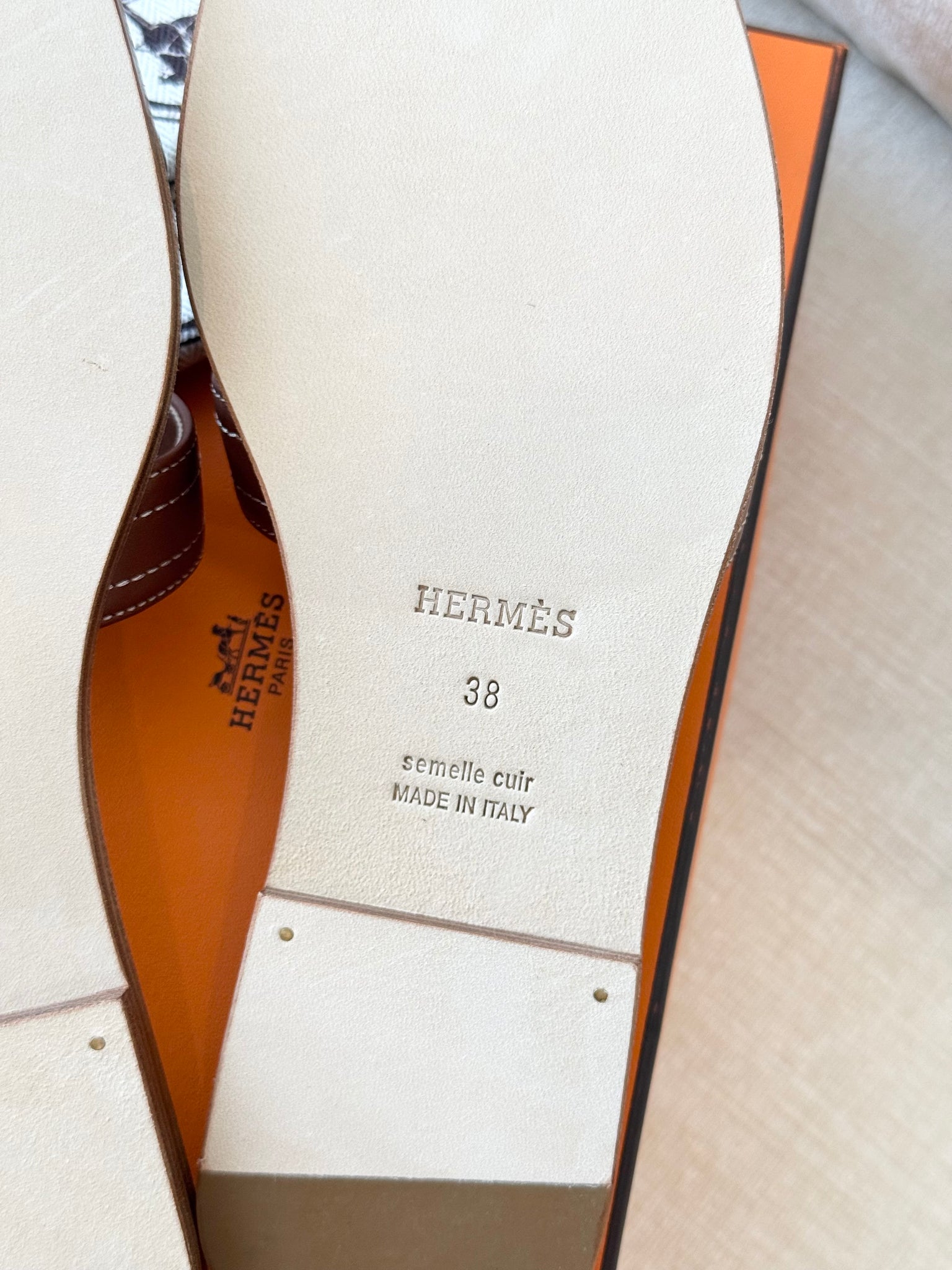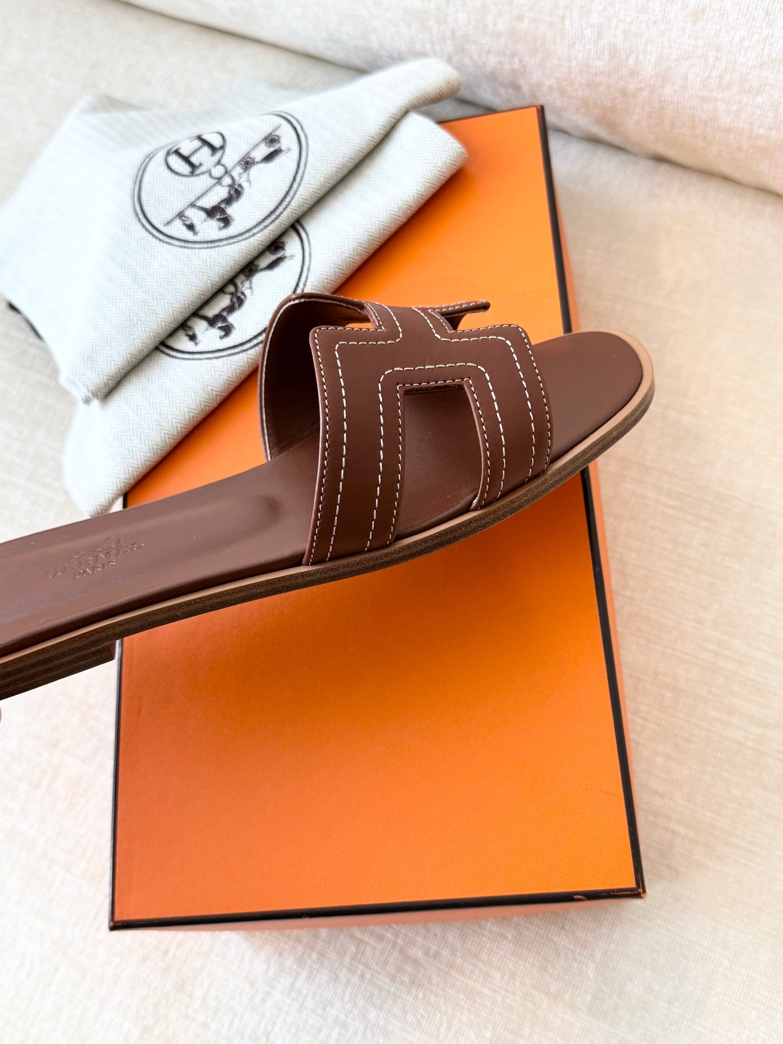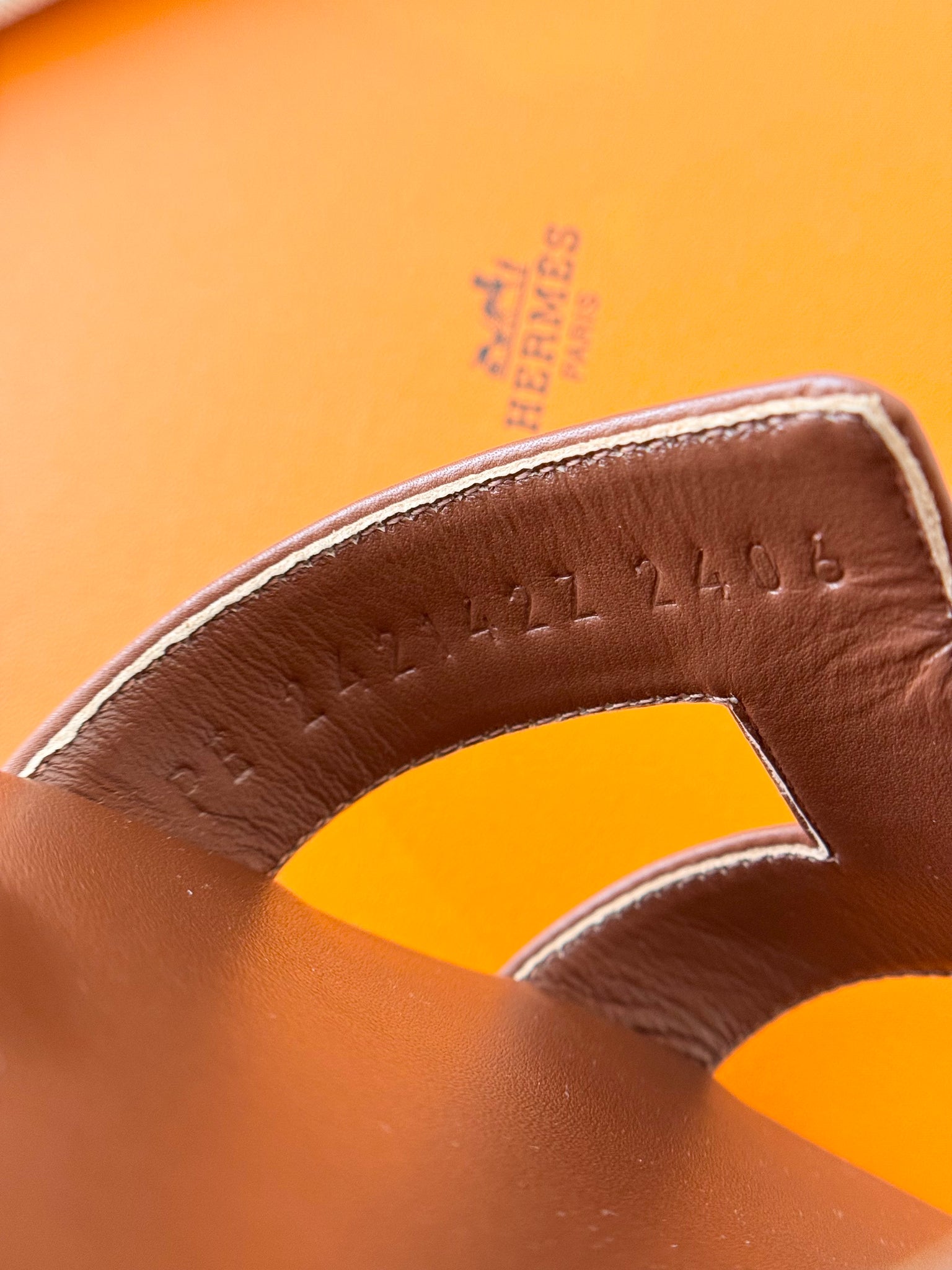 - Sandal in embroidered calfskin with iconic "H" cut-out