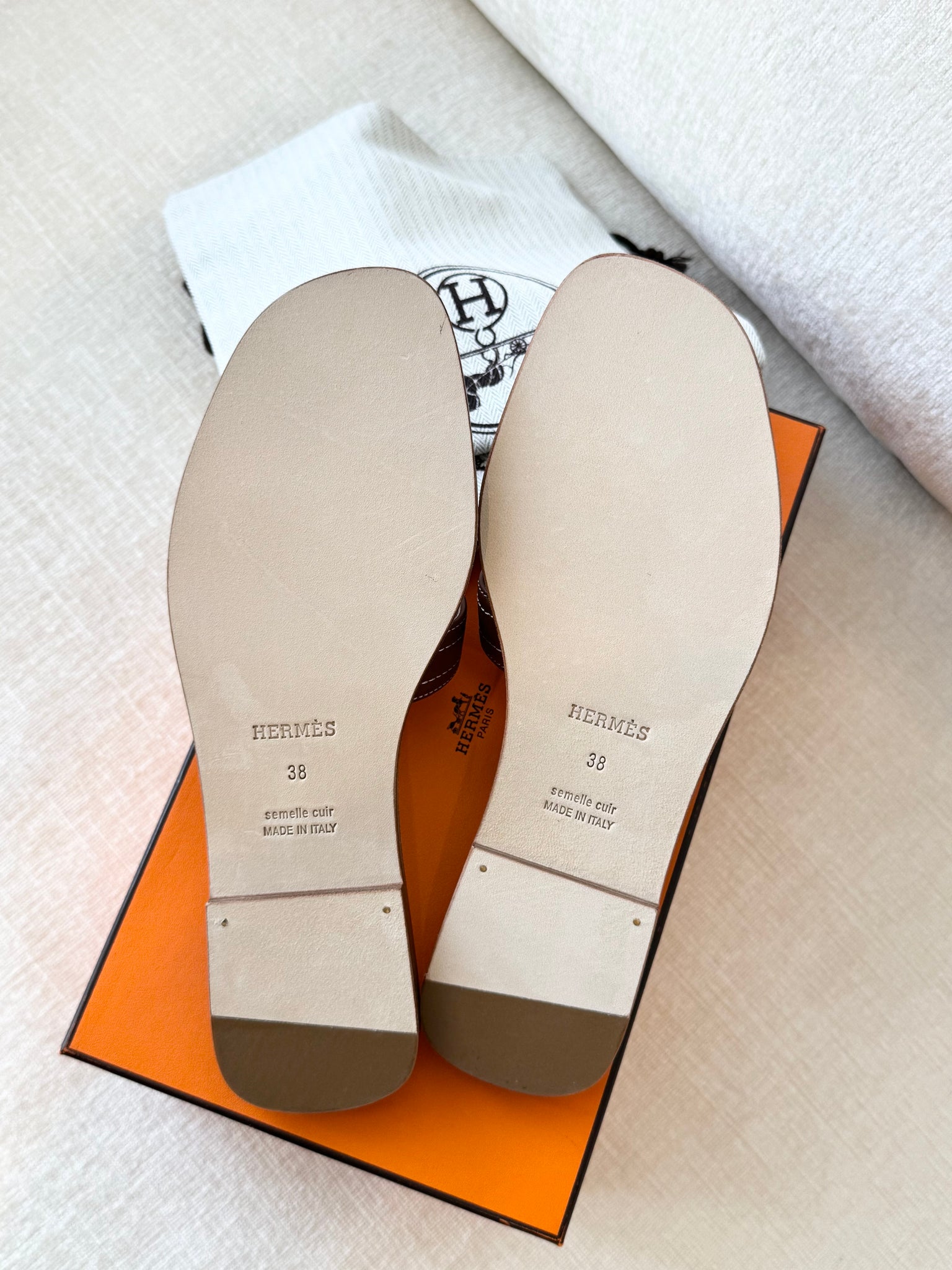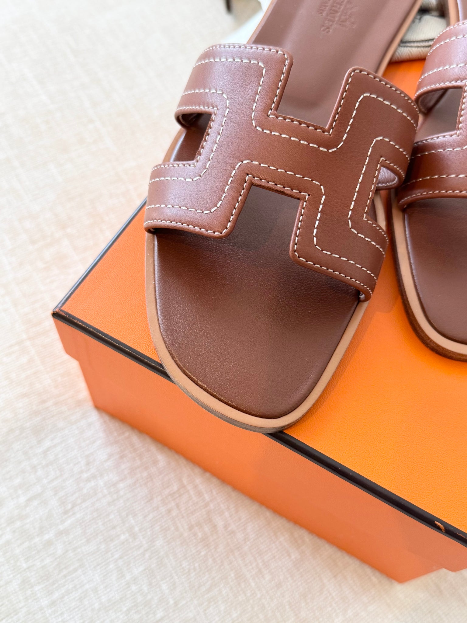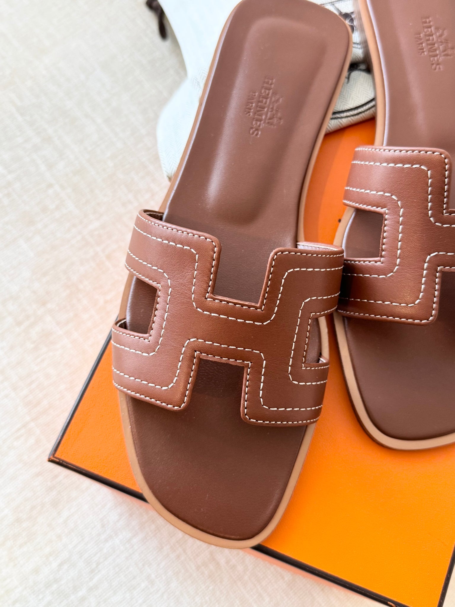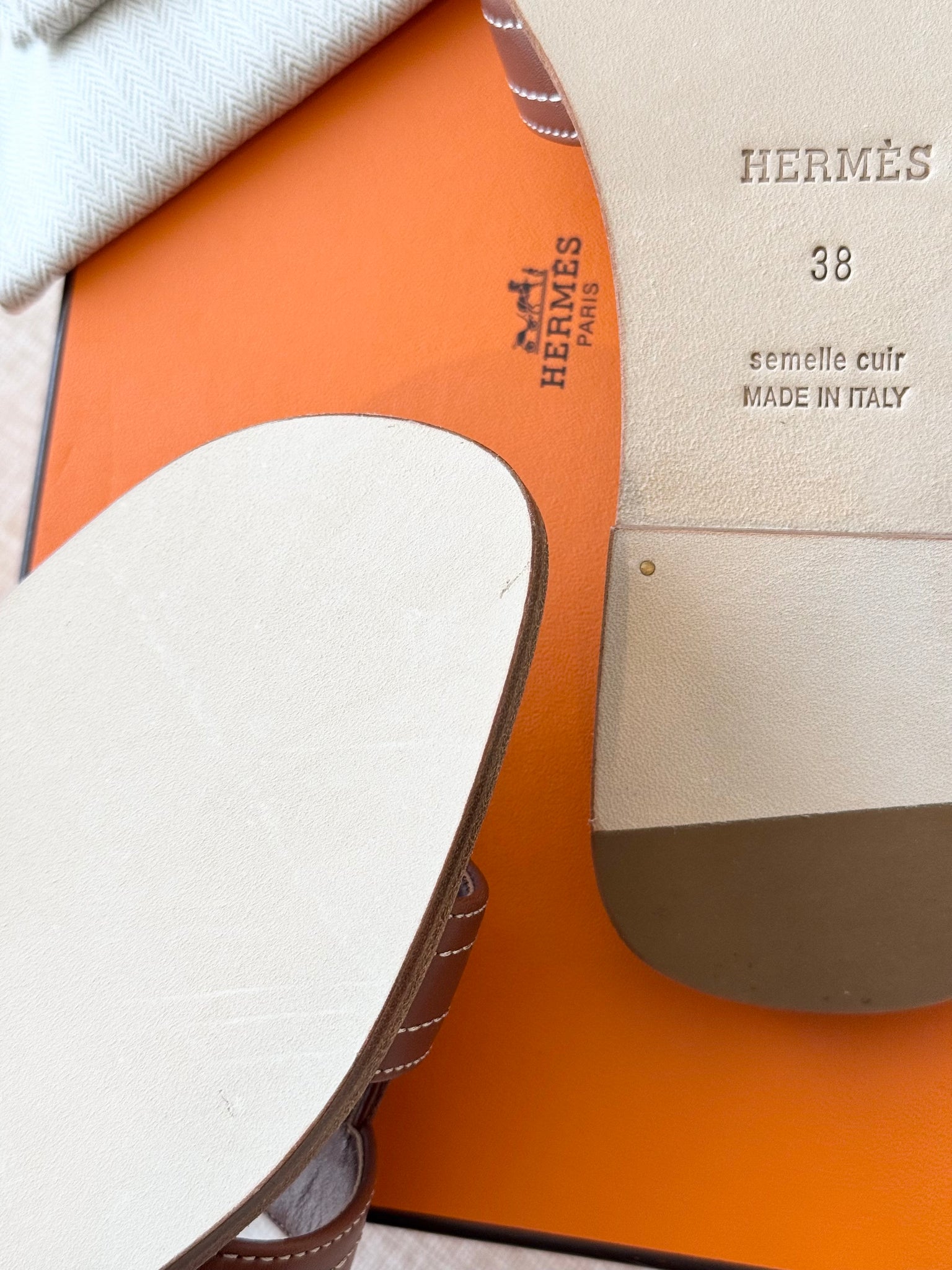 - Sandal in embroidered calfskin with iconic "H" cut-out