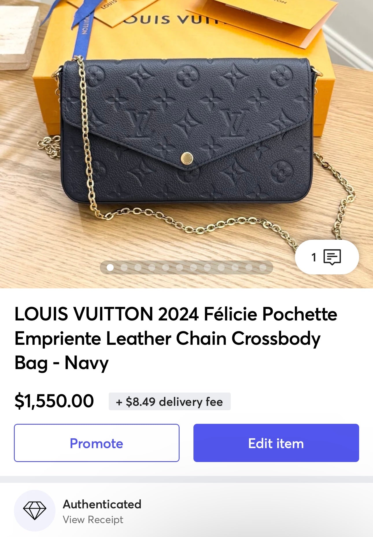 - Comes with: box, dust bag, ribbon, authenticity card, receipt