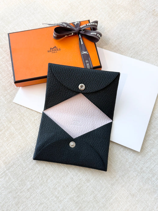 ✨NEW✨2025 Hermes Calvi Verso Card Holder / Bleu Océan / Mauve Pâle
