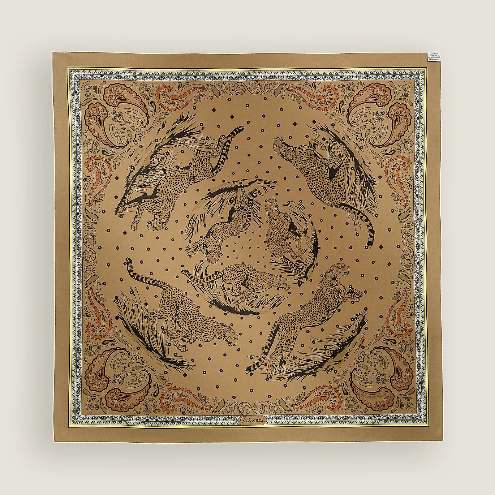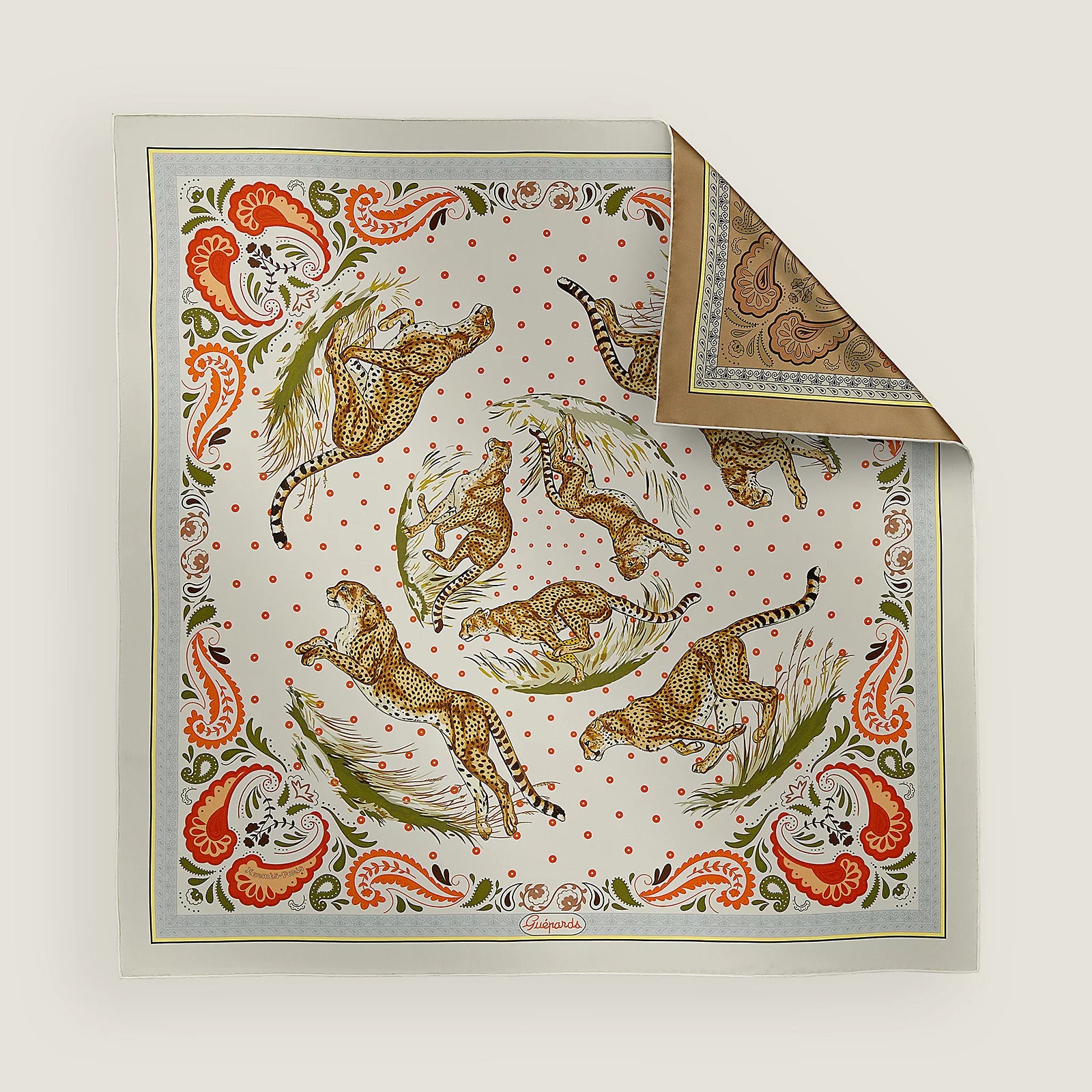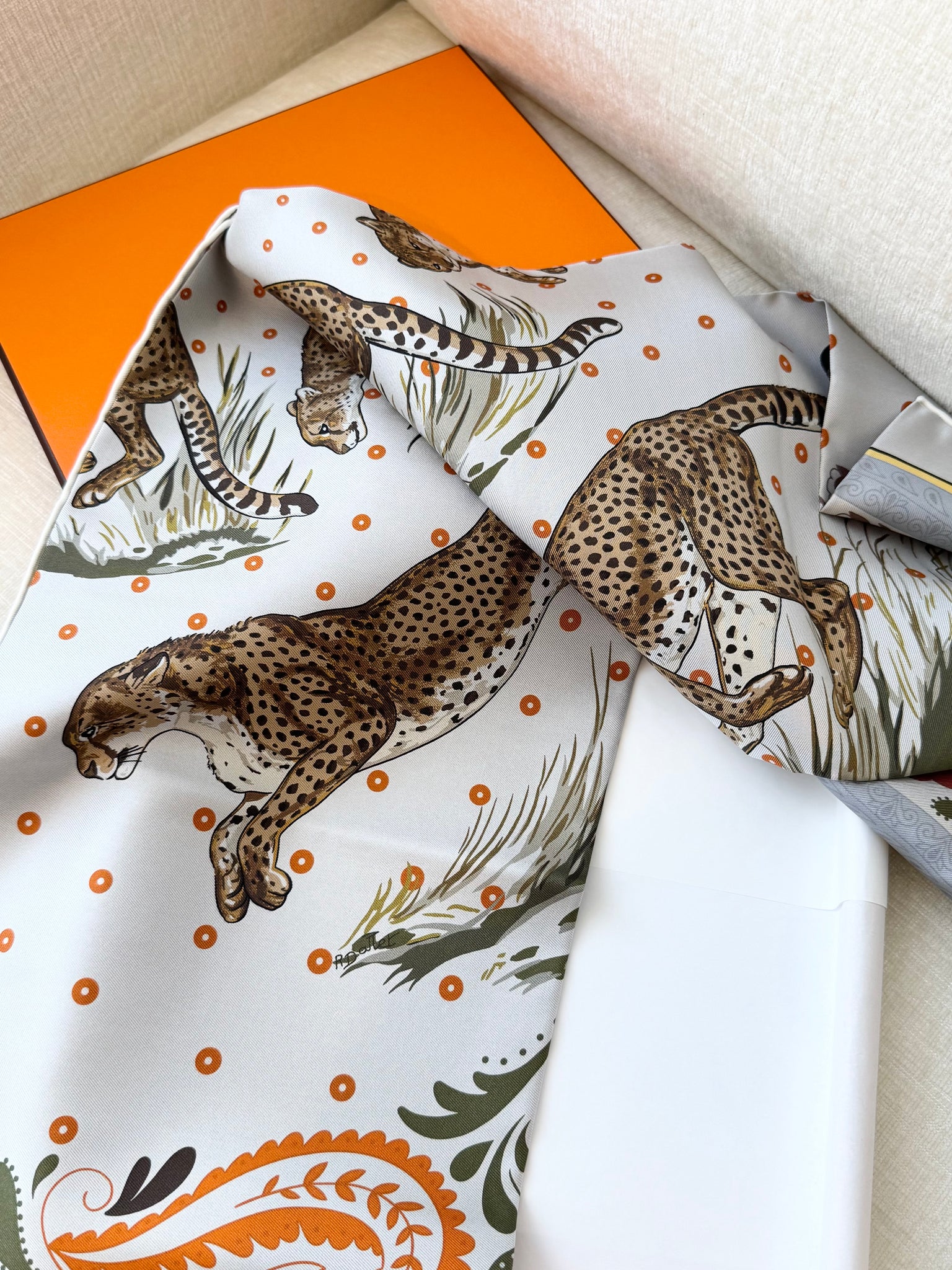 Hermès 2025 Guepards Bandana Double Face Scarf 90 in Noir / Ardoise / Rose
