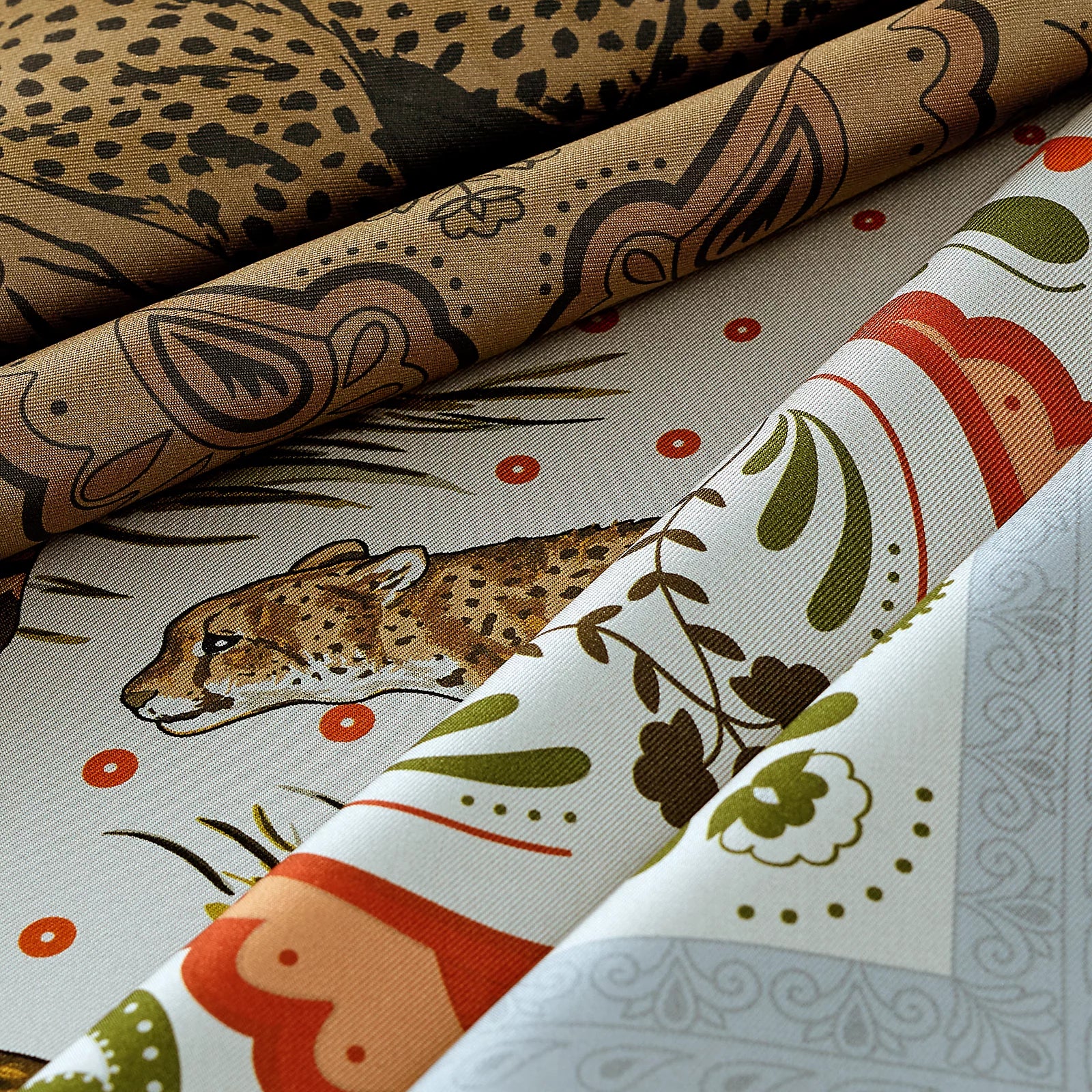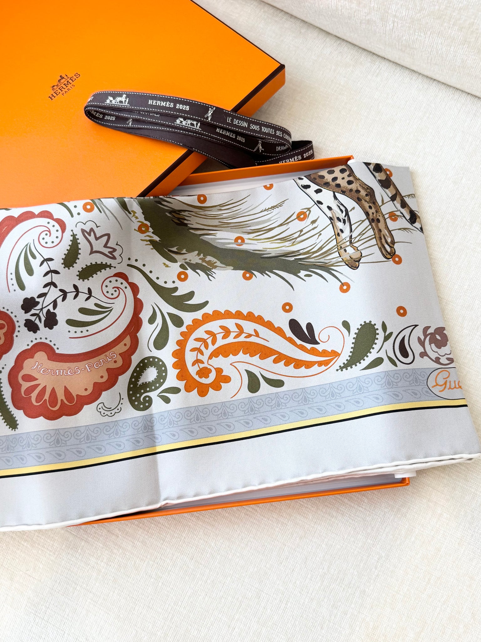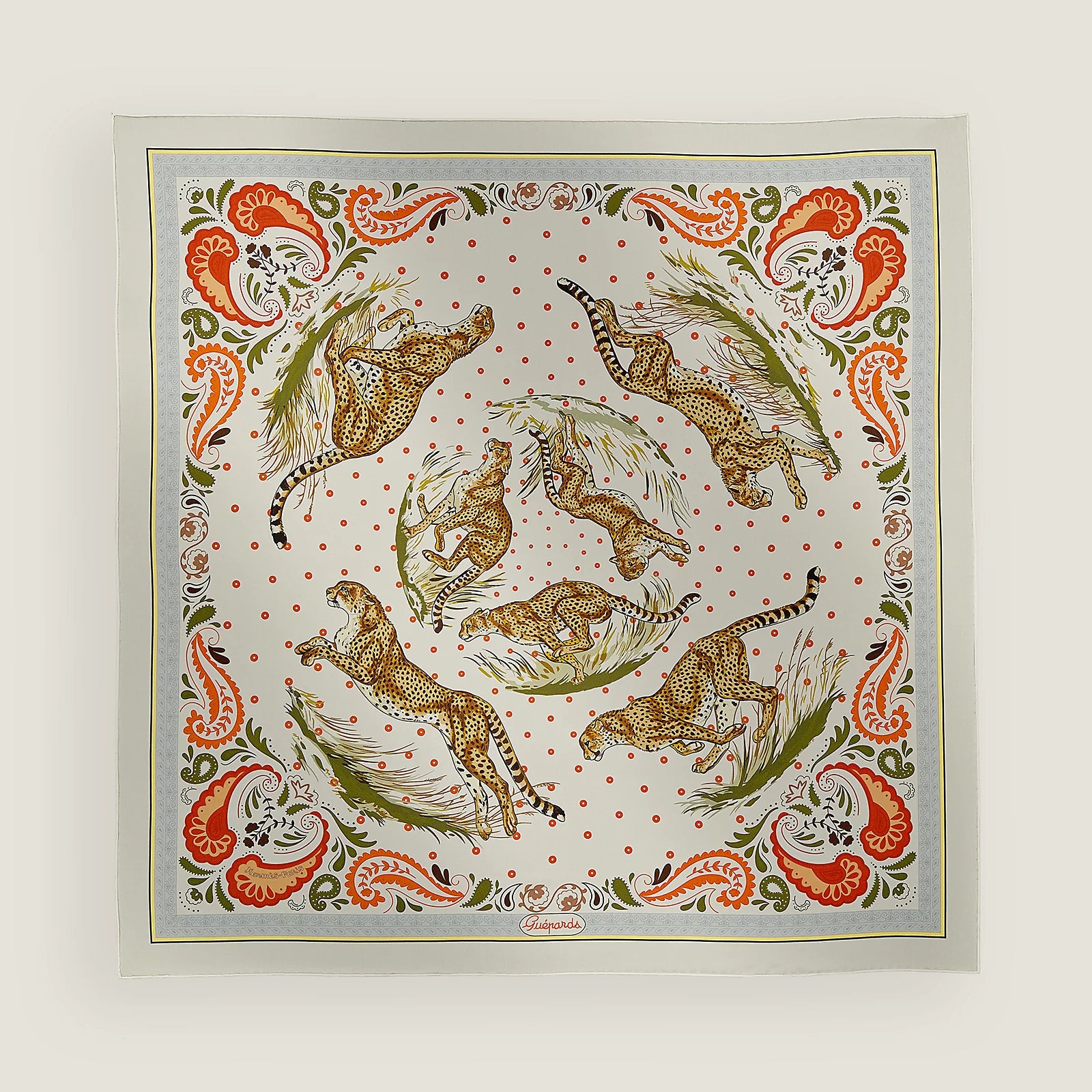 Hermès 2025 Guepards Bandana Double Face Scarf 90 in Noir / Ardoise / Rose