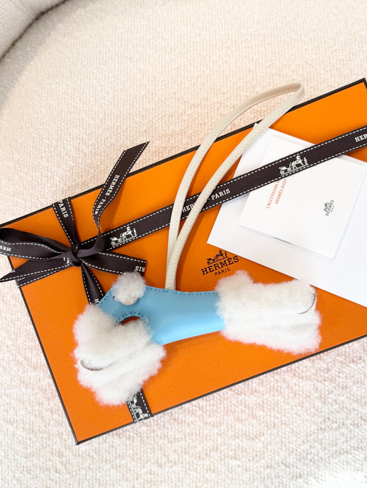 Hermès 2025 Milo & Mouton Budy Bag Charm - Ecru/Céleste/Craie
